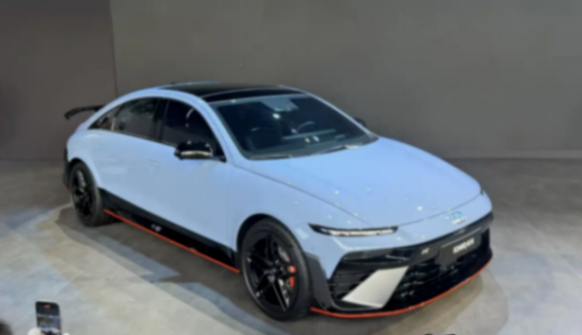 值得一提的是,今年是現代N系列成立十周年,隨著新能源的潮流,也衍生出了各種高性能純電產品。我們看到,現代IONIQ 6 N基本上延續了最新的家族化設計,經典的藍色車身,加上車身四周大量黑化元素,以及紅色點綴,運動氛圍拉滿。
