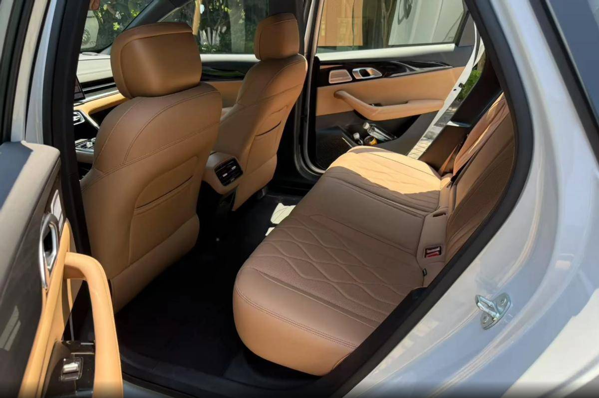 而作為一款滿足家用需求的車型,銀河A7也較為注重座艙空間的打造,以我180cm的身高進行實測,在前后排落座后均能獲得1拳左右的頭頂距離,4918*1905*1495mm的車身尺寸和2845mm的軸距也確保了縱向的乘坐空間。座椅的舒適度給我留下了較深的印象,尤其是前排的通風按摩功能,夏天酷熱的天氣下也能保持腿部臀部的干爽。后備廂有著535L的基礎容積,能裝下日常出行的行李裝備,而將后排放倒后,整體容積能提升至988L,甚至一場小型搬家也能勝任。