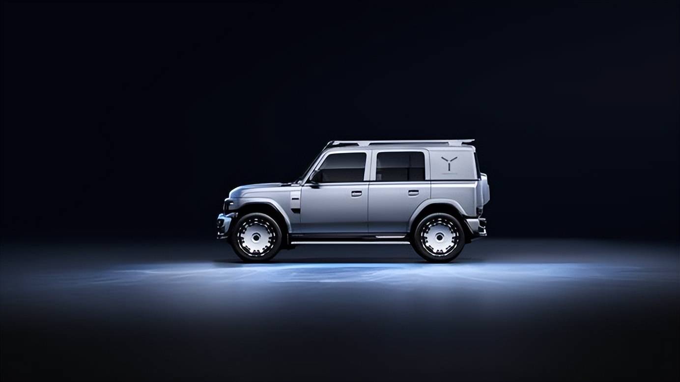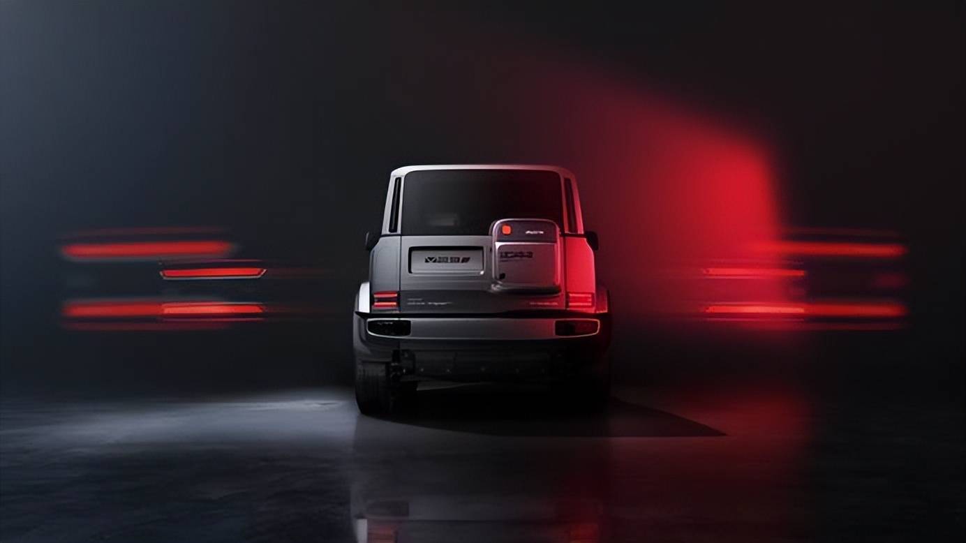 車身側面以平直線條為主,懸浮式車頂與隱藏式門把手降低風阻,21英寸亮面封閉式“大餅”輪輞搭配寬體輪眉,營造出厚重動感的姿態。車頂LED射燈組如同機甲的“眼瞳”,可隨時刺破夜色;車側踏板與模塊化行李架則兼顧實用性,支持加裝射燈支架、金屬網架等擴展設備。車尾“小書包”式備胎罩與熏黑橫向尾燈形成反差,專屬拉花與優化后的后包圍呼應車頭設計,每一處細節都在宣告:這是屬于未來越野的審美革命。