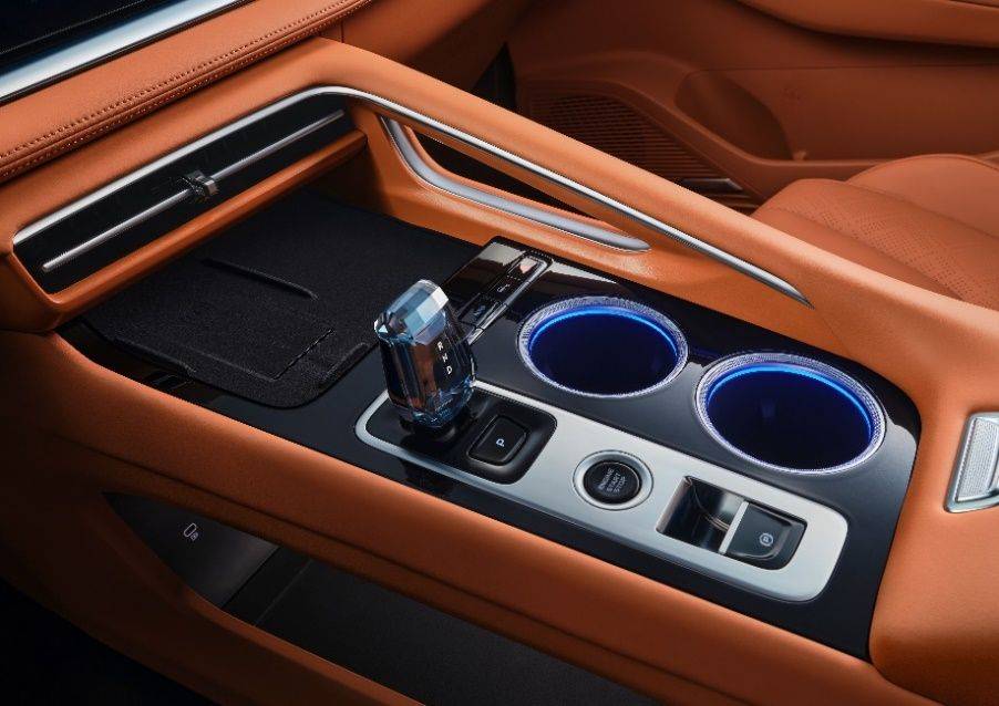 中控區(qū)域,拱橋承韻?扶手臺(tái)中央控制區(qū)為“拱橋半包圍”結(jié)構(gòu),保留常用功能實(shí)體按鍵,操作高效;3D鐳雕?水晶擋把工藝精致,握持體驗(yàn)佳;窗影疊映?座椅采用“菱扇鏤空”工藝,乘坐干爽。高山流水?音響氛圍燈擁有同級(jí)最多12個(gè)發(fā)光區(qū)域,256色可調(diào),支持呼吸、漸變、開(kāi)門(mén)迎賓等九大功能,兼具氛圍營(yíng)造與貼心提醒作用。