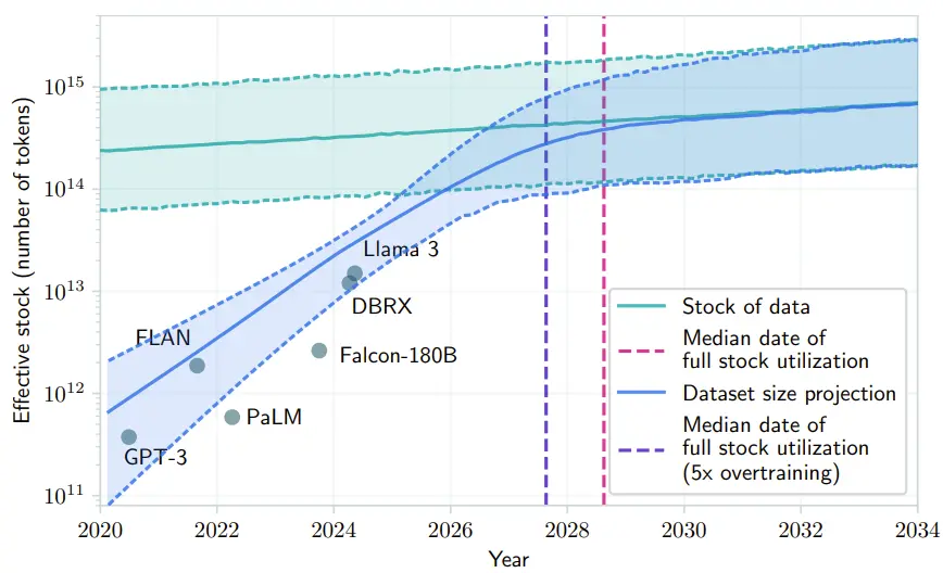 圖源:來自論文《Will we run out of data? Limits of LLM scaling based on human-generated data》