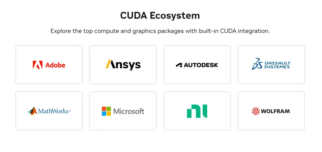 并且英偉達(dá)的開(kāi)發(fā)和生態(tài)肯定是繞不開(kāi)的坎,就比如堅(jiān)固的CUDA開(kāi)發(fā)生態(tài)護(hù)城河,還有其他什么豐富的API接口、SDK等等。