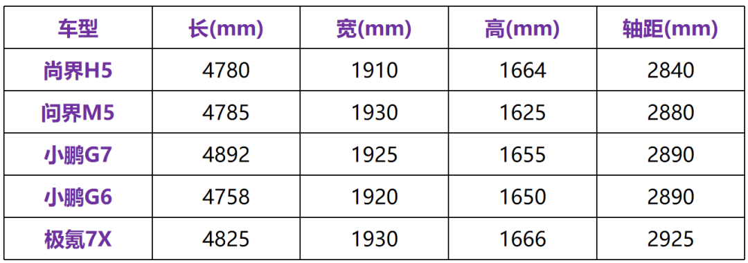 尺寸方面,尚界H5算是一臺中型SUV,體量和問界M5、小鵬G6都比較接近。不過在軸距方面,尚界H5比其它幾款車型都要短一些,在整體中型SUV市場里不算突出。
