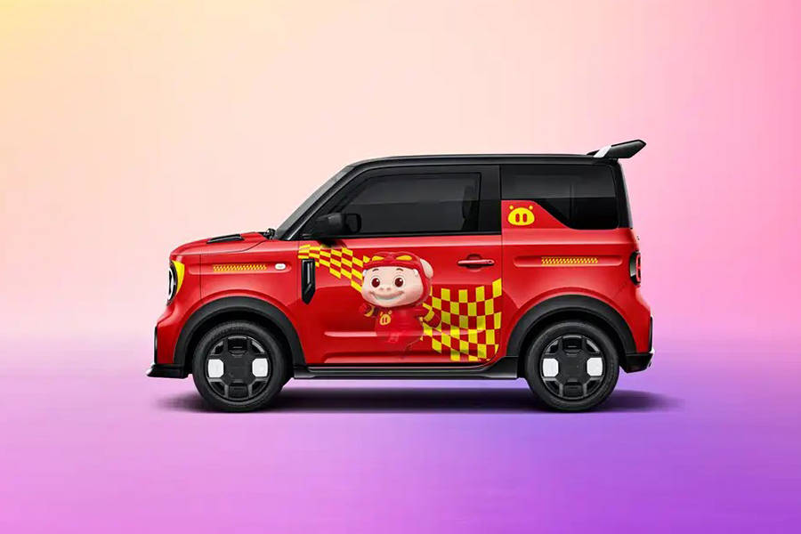 雖然是微型車,但新車采用大量的長線條,讓它看起來更加舒展。同時,其采用雙門4座布局,并配備低風阻造型輪圈。車身側(cè)面貼有豬豬俠動漫角色,提升辨識度。此外,該車尾部還增加了大尺寸擾流板的設(shè)計,運動化風格得到明顯提升。車身尺寸方面,現(xiàn)款車型長寬高分別為3150/1540/1685mm,軸距為2015mm。