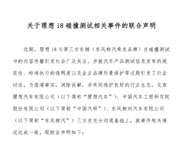 三方聯(lián)合聲明中,理想與中國(guó)汽研主動(dòng)承擔(dān)責(zé)任: