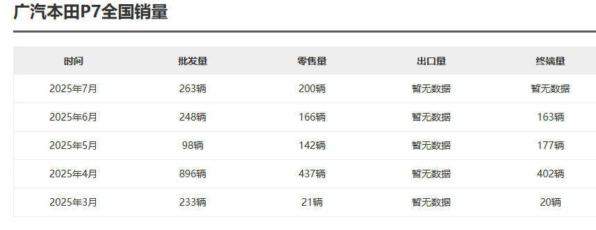 零售銷量數(shù)據(jù)顯示,廣汽本田P7在7月份的銷量僅有200輛,而6月份則為166輛,5月142輛,4月則為437輛,數(shù)百臺的月銷量在新能源車大行其道的當下,顯然是不夠出彩的。而P7未能扮演起廣汽本田新的銷量增長極,也限制了廣汽本田整體的銷量走高。