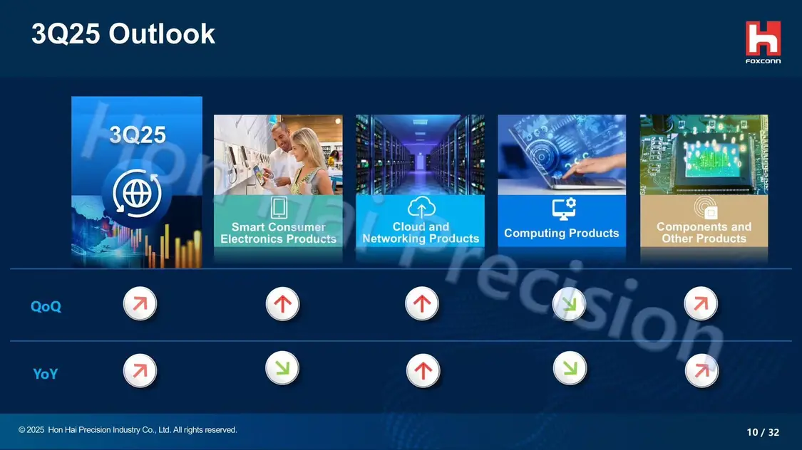 8 月 15 日消息,鴻海(富士康)昨日公布了 2025 年第二季度財務(wù)報告,營收 1.79 兆新臺幣(現(xiàn)匯率約合 4278.87 億元人民幣)同比增長 16% 創(chuàng)新高,連同盈利與凈利等均創(chuàng)當(dāng)季新高。