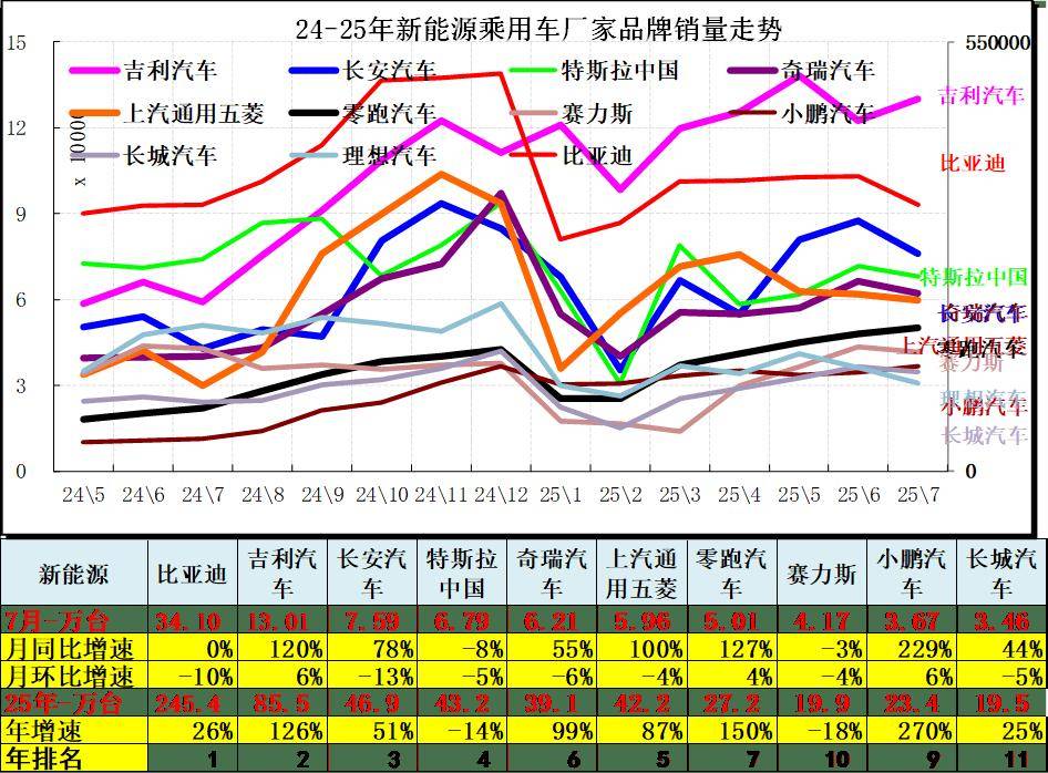 2025年7月汽車細分市場走勢和廠家競爭表現分析