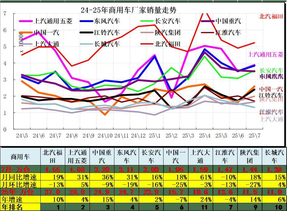 2025年的福田和重汽的增長較強,行業格局相對穩定。
