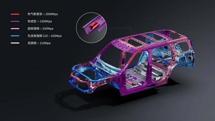 極限環境下,猛士M817安全配置全程守護,智能紅外夜視系統可在120米內識別車輛、行人、動物,濃霧、風沙等惡劣天氣也能看清前路;全場景主動安全帶、1700mm超長安全氣簾,讓安全感倍增;寧德時代越野專用電池采用10層結構防護,全方位抵御越野時的磕碰沖擊。同時戰甲車身采用超高強度籠式安全結構、1920mm內高壓一體成型縱梁,再加上結構總長度達12.48米的2000MPa熱成型鋼、占比達83.2%的高強度鋼、全車頂壓安全設計等,用車身上下左右的無死角防護,構筑起“金鐘罩”般的安全座艙。