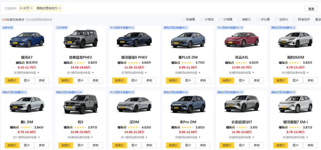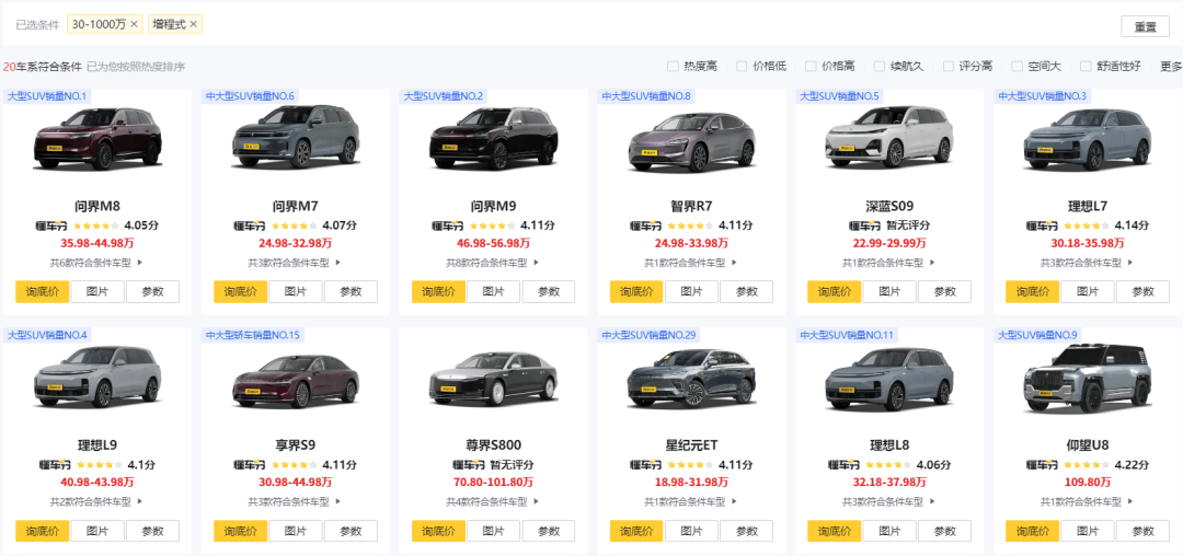 這是之前后臺收到的提問,也暴露了電混領域的尷尬局面,因為答案是幾乎沒有!盡管當下的國內汽車市場各級別各種取向的新能源汽車多如牛毛,但條件設定在30萬元以上時,絕大多數選項都已被過濾掉。