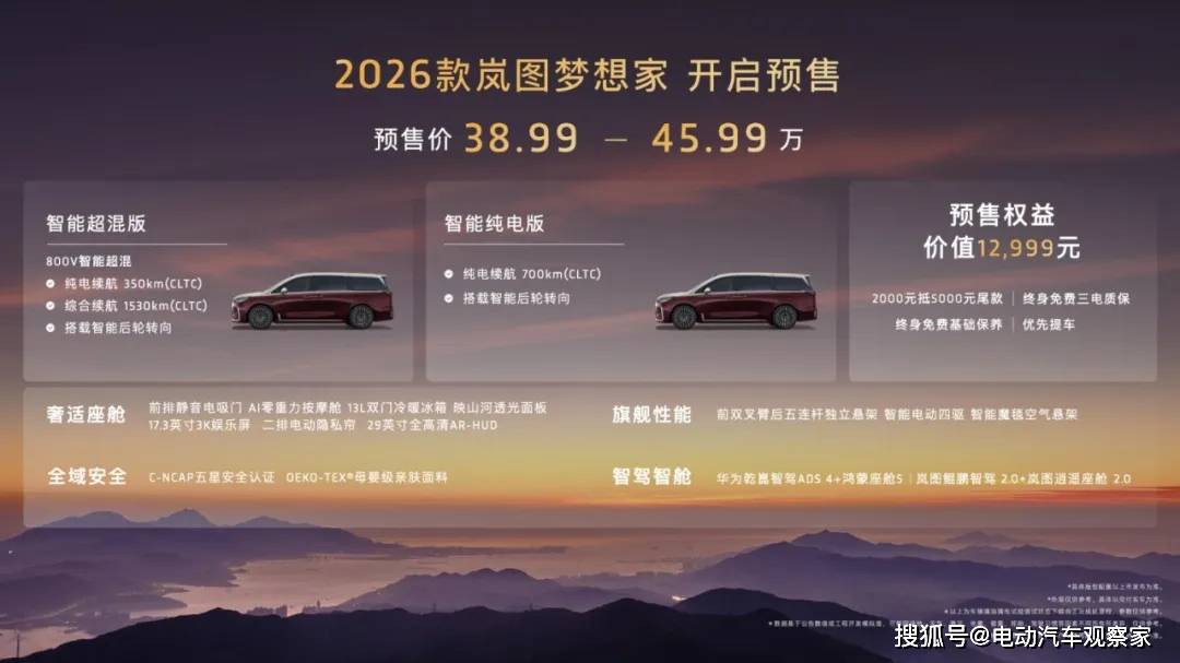 而車展開幕當天,2026款嵐圖夢想家開始預售,預售價為38.99萬-45.99萬……