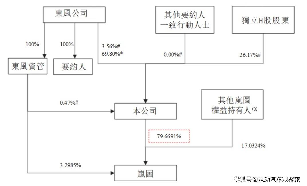 介紹上市部分,東風集團股份(0489.HK)將其持有的嵐圖汽車 79.67% 股權按持股比例向全體股東分派,隨后嵐圖汽車以介紹上市方式登陸香港聯交所。