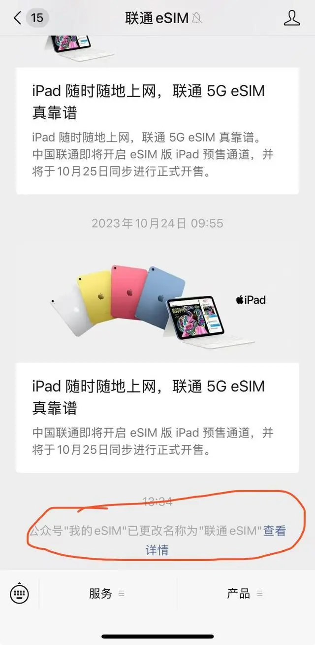 9月9日,中國聯通旗下的微信公眾號“我的eSIM”更名為“聯通eSIM”,并重新認證為“中國聯通eSIM業務官方認證賬號”。該公眾號的認證主體為聯通華盛通信有限公司。其注冊及更名歷程如下:2022年4月18日,注冊名稱為“eSIM注冊臨時使用”;2022年7月27日,更名為“我的eSIM”;直至2025年9月9日,再次更名為“聯通eSIM”并完成官方認證。