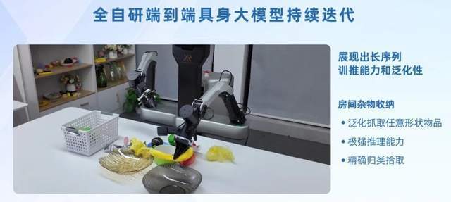 所以在收拾餐桌這個任務(wù)中,它執(zhí)行起來并沒有固定的順序,說先做什么、后做什么,都是在一個長程任務(wù)里面,把各種子任務(wù)給穿插起來。人其實很難劃分每個任務(wù)的邊界是什么,這種任務(wù)就得靠模型端到端自主去決策、實時去規(guī)劃,把整個任務(wù)完全做完的。