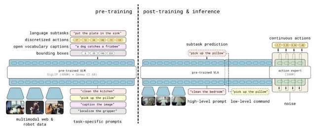 但你實際在部署的時候可以有很多方式,比如把擅長動作部分給蒸餾壓縮出來,然后擅長語言推理、視覺推理的部分給它放在云端等等。利用類似的方式部署,在推理過程中做很多優(yōu)化,但訓(xùn)練的時候它還是一個統(tǒng)一架構(gòu)。