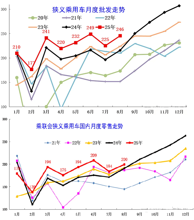 首先看零售,8月份零售市場銷量199.5萬輛,同比增長4.6%,這對于淡季的8月份來說,內卷之下還有增長已經實屬不易,也代表著反內卷浪潮,正推動車市向平緩的方向轉變。