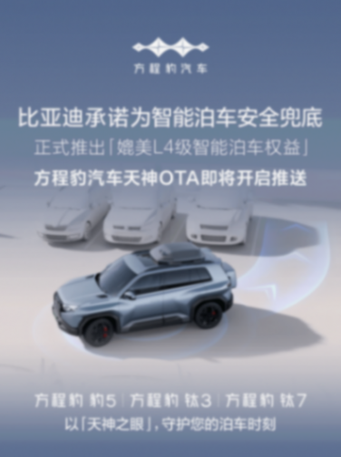 天神之眼B不僅有安全的體驗,更有安心的承諾。今年7月,比亞迪正式官宣:用戶使用泊車輔助時造成的任何事故,比亞迪將全額兜底。