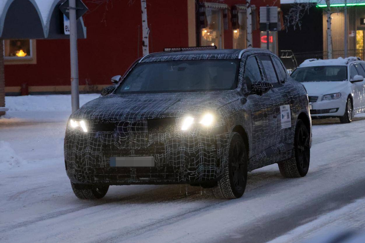 在冬季的瑞典北部,一束耀眼的光芒刺破了昏暗的天色。這光芒來(lái)自于一輛全身覆蓋著偽裝貼紙的SUV,在其車頭兩側(cè)各裝有兩條傾斜的LED光帶,它們作為最新的家族設(shè)計(jì)清晰地表明了這款車的身份。