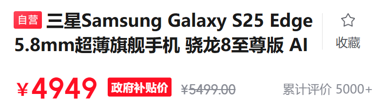 三星Galaxy S25 Edge在一些電商平臺(tái),這款手機(jī)的起售價(jià)已經(jīng)由上市初的7999元,跌至5000以?xún)?nèi)(國(guó)補(bǔ)后)。正因?yàn)槿绱?,在即將?月發(fā)布的Galaxy S26系列,三星預(yù)計(jì)會(huì)砍掉S26 Edge。
